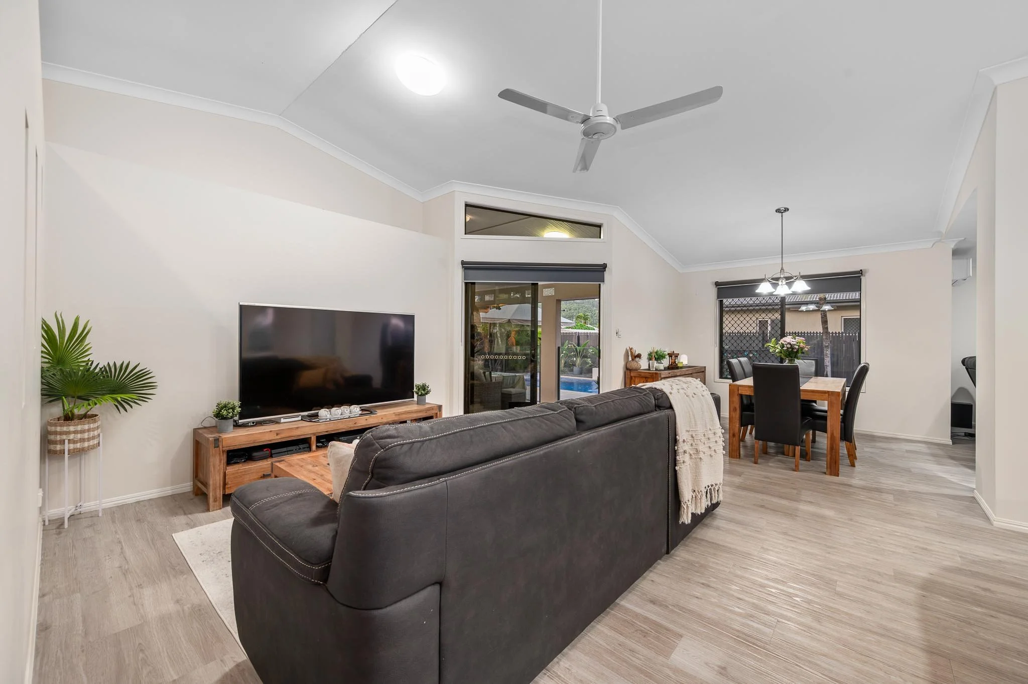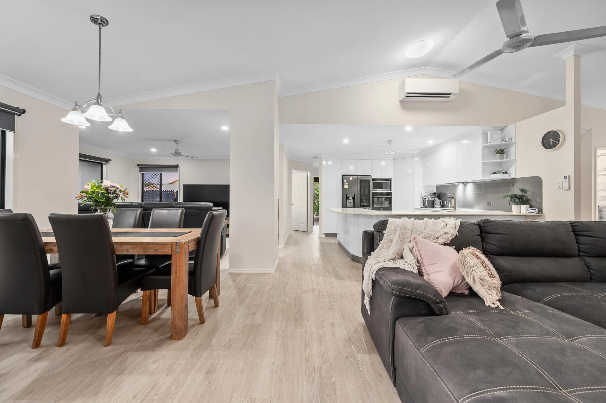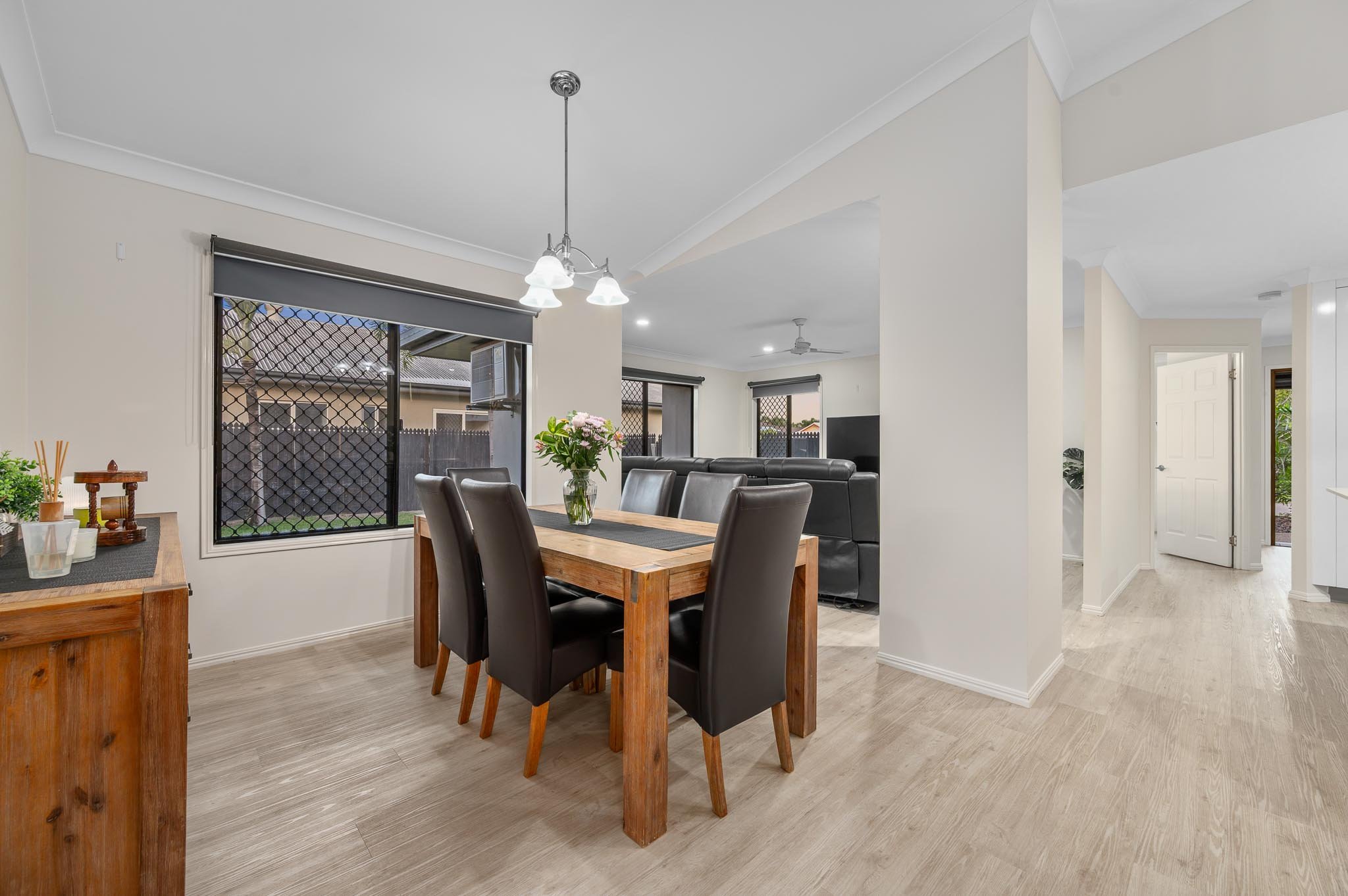 Stepping inside, you'll immediately notice this home has a fresh feel, with easy-care timber look flooring throughout, high ceilings, and plenty of natural light.