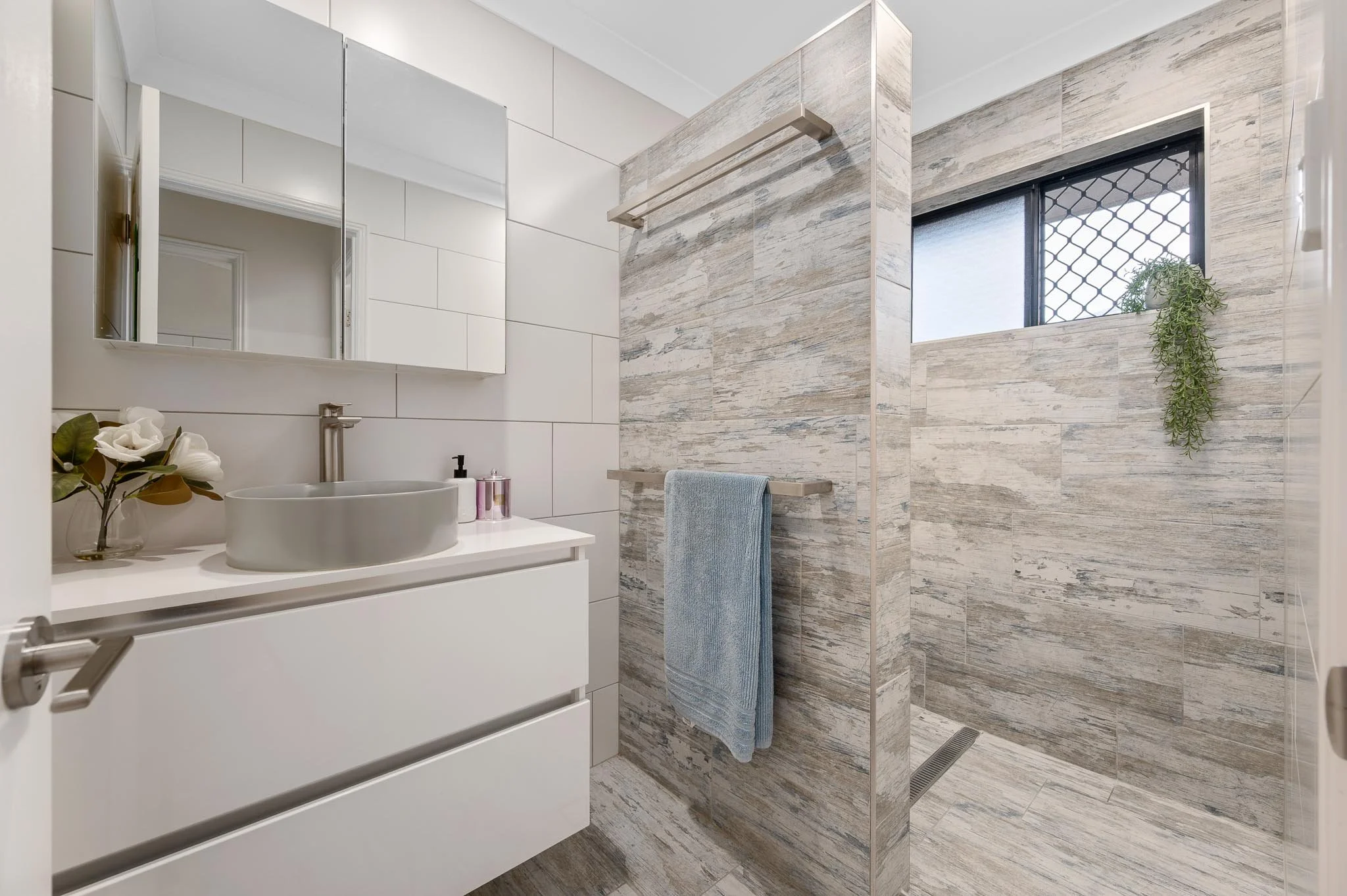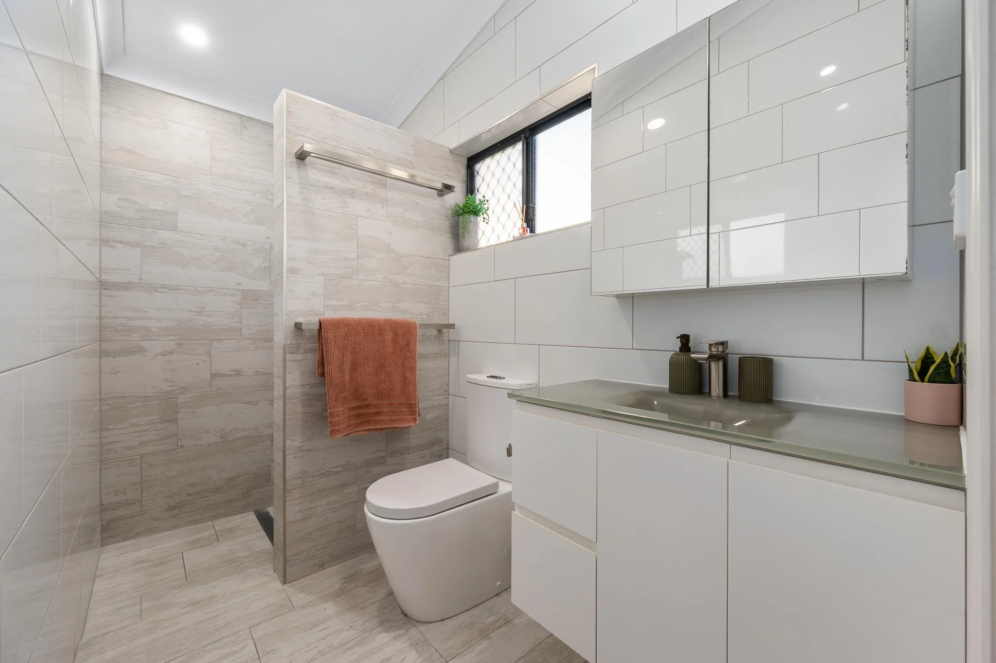 • Floor to ceiling tiles in the bathrooms