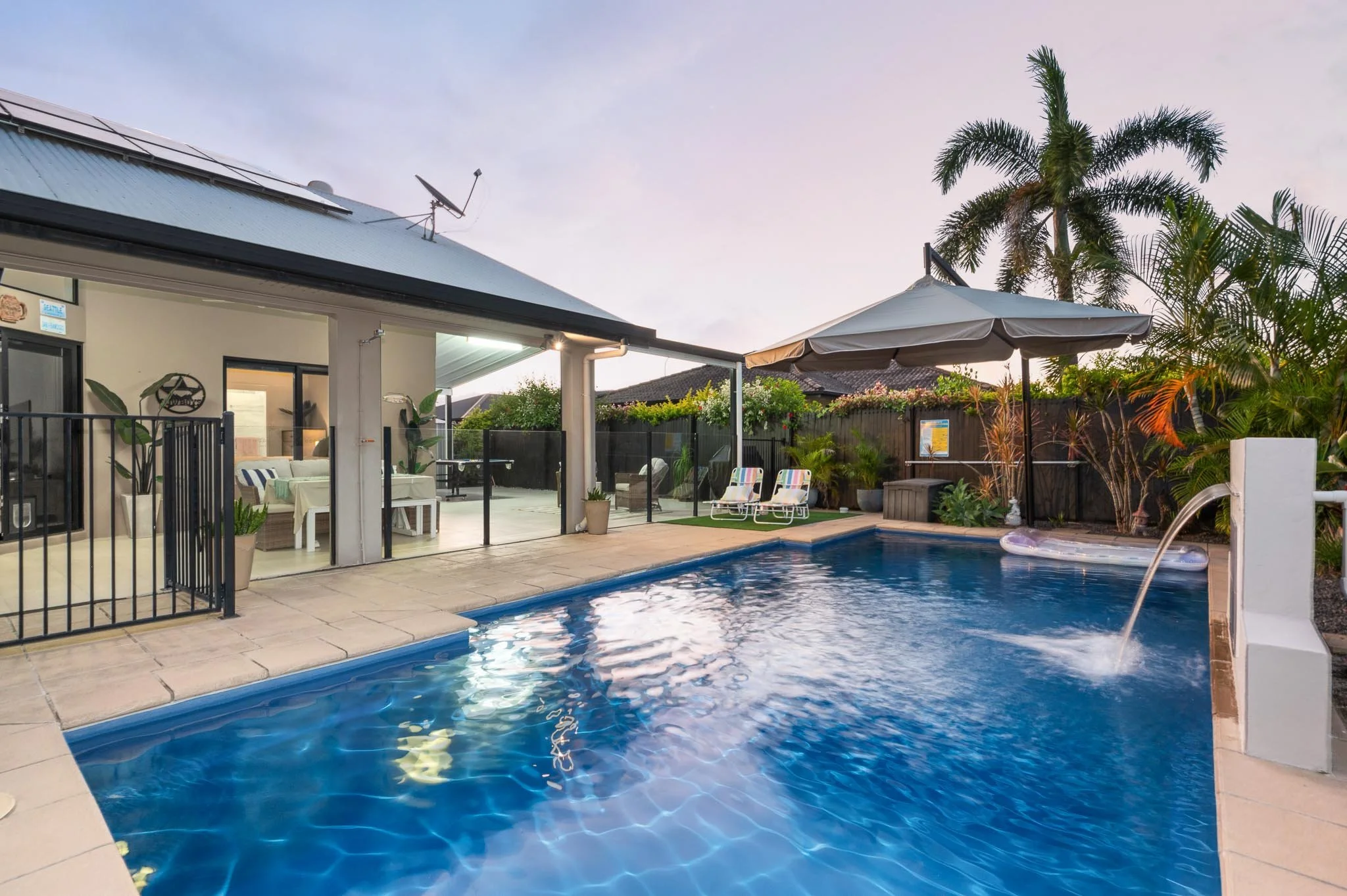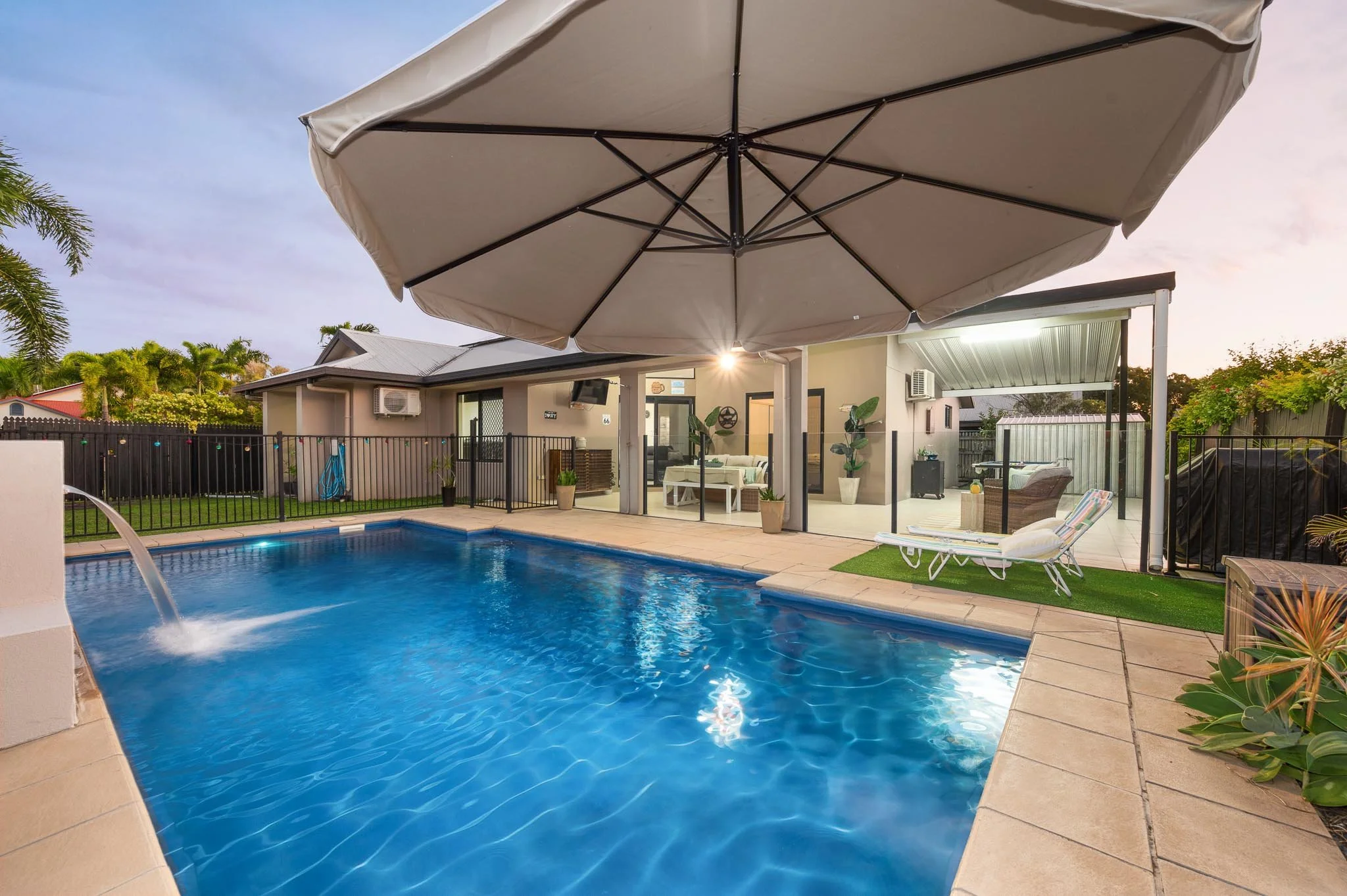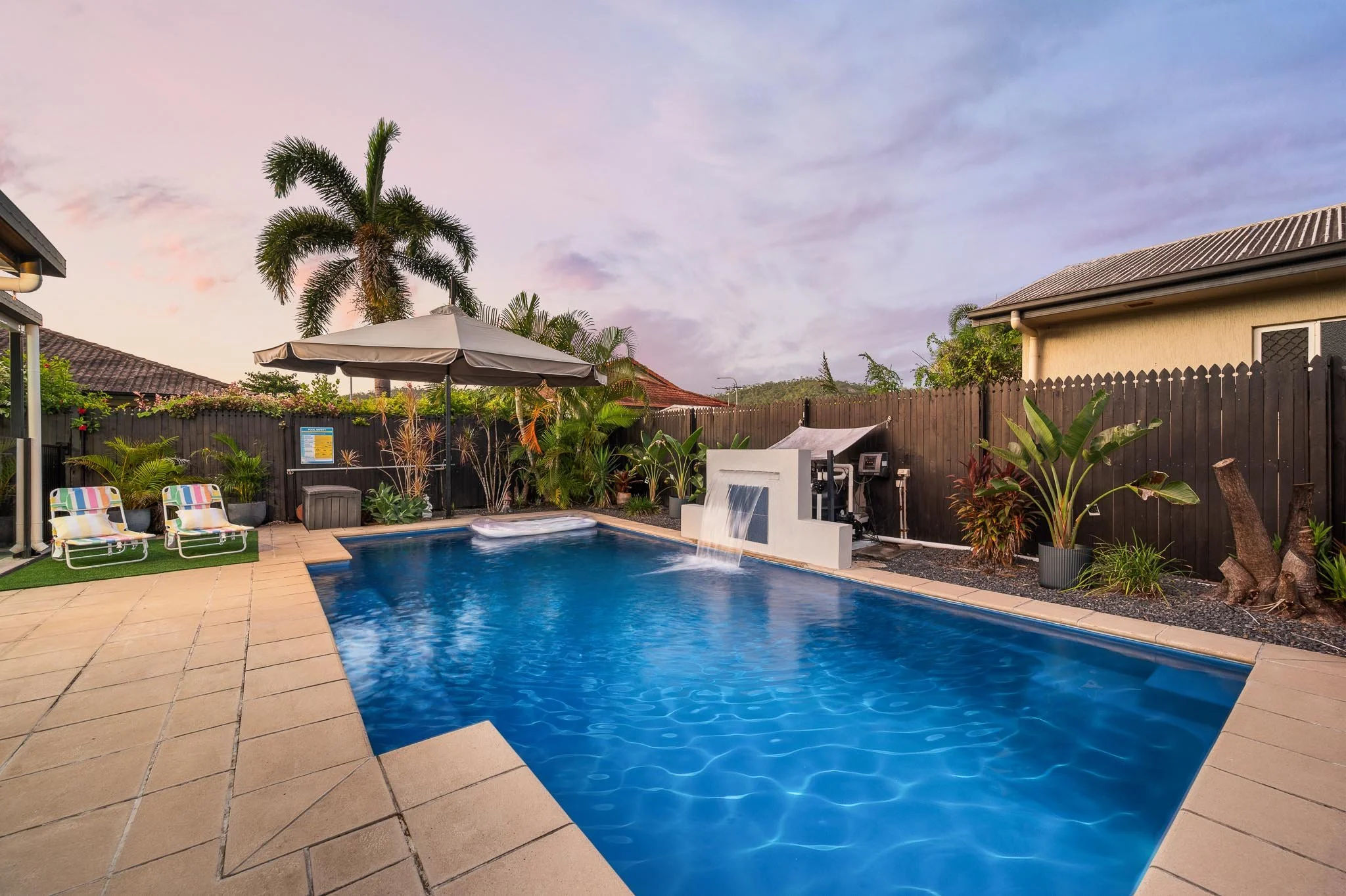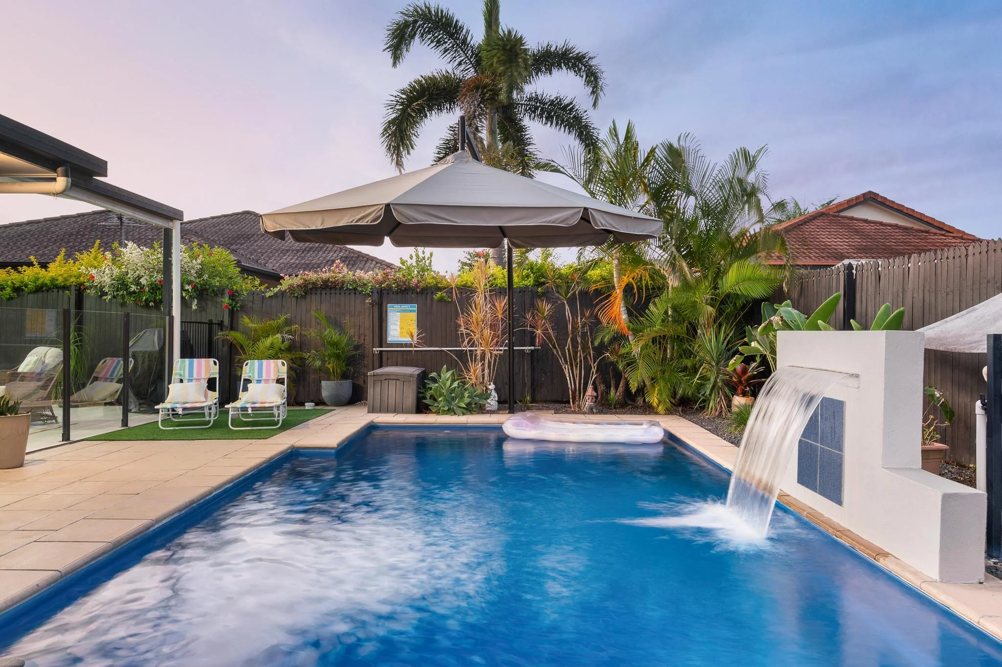 • Sparkling pool with a feature waterfall
